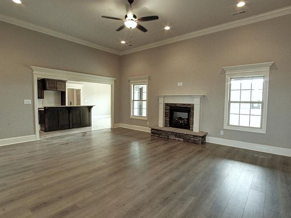 The Foresthill Plan D is a two story home with 3 car side entry garage and is backed by a 2-10 home warranty.. Upgrades: NO CARPET - REV-WOOD in all bedrooms.Quartz in the KitchenGranite in all bathrooms.Under cabinet lights.Home has 4 bedrooms (Master bedroom is down stairs) and 3.5 baths. Three bedrooms and a bonus room are upstairs along with 2 baths. Great Room features 12' ceiling, extensive trim, gas-log fireplace with raised stone hearth, wood plus flooring and recessed lights and ceiling fan. Dining room has 9' coffered ceiling, wood plus flooring, extensive trim including shadow box under chair rail. Kitchen includes 9' ceiling, custom cabinetry and granite counter tops, large island with raised bar seating, stainless appliances including dishwasher, gas cooktop, wall oven and wall microwave, tile backsplash, tile flooring, recessed lighting, and huge walk-in pantry. Breakfast has 9' ceiling, tile flooring and extensive trim. Laundry has custom cabinet, tile flooring. Master bedroom has 9' ceilings plus a double tray, recessed lighting, extensive trim and ceiling fan. Master bath has 11' ceilings, glamour tub with tile surround, large tile shower with tile bottom and rimless shower door, separate toilet area, double vanity with granite counter tops and huge walk-in closet. The home has hardwood stairs leading to the second story. The additional bedrooms and bonus room have ceiling fans and crown molding. Home has a large covered rear porch perfect for entertain