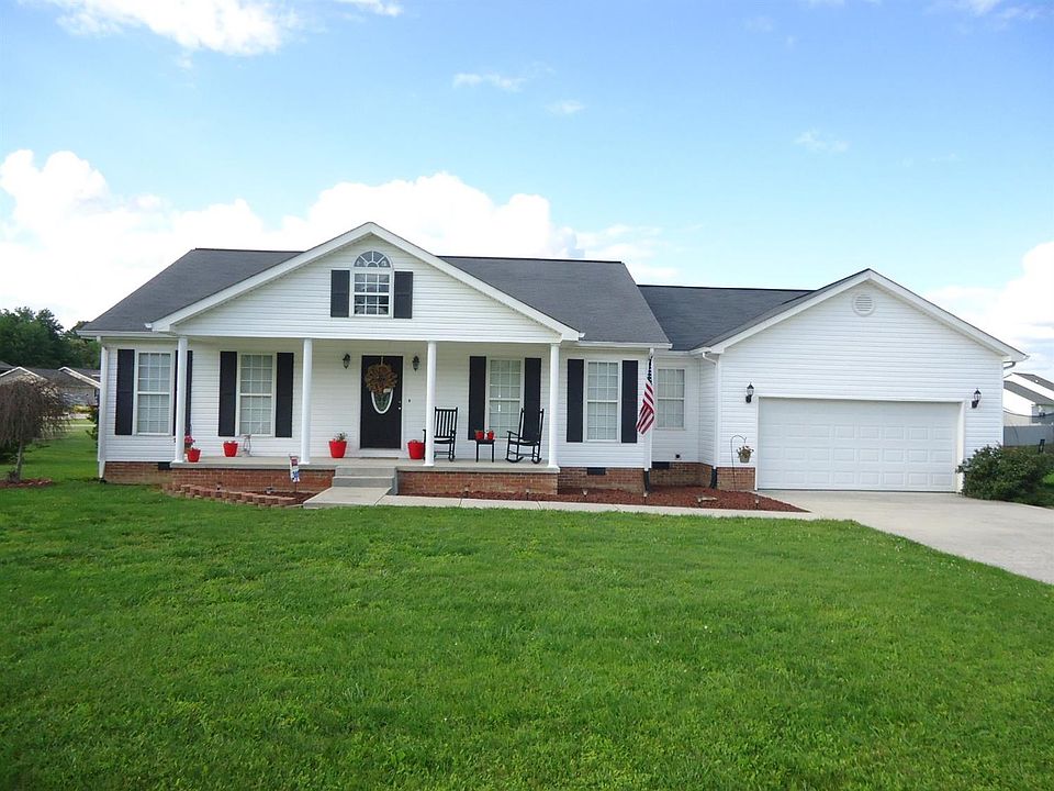 Spacious 3 bedroom, 2 bath ranch home in Cobblestone Estates! Split bedroom plan with open concept. Enter into large tiled foyer, formal dining room currently used as family/TV room, large living room with cathedral ceiling, beautiful kitchen with solid surface counters, appliances, and breakfast nook. Master suite features whirlpool tub and extra large walk-in closet. 2 additional bedrooms and hall bath. Other features include hardwood flooring, large rear deck overlooking a level yard and playset, 2 car attached garage, and covered front porch. Call today for more information!