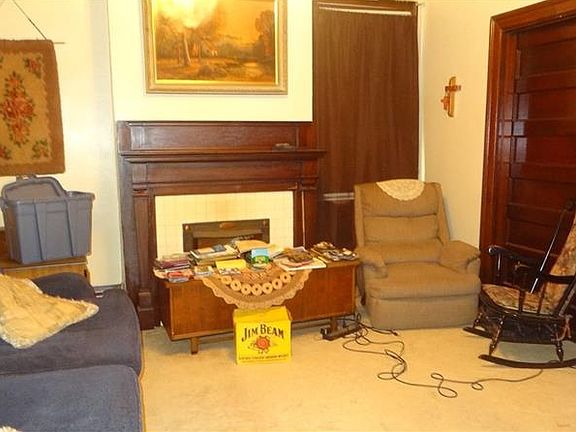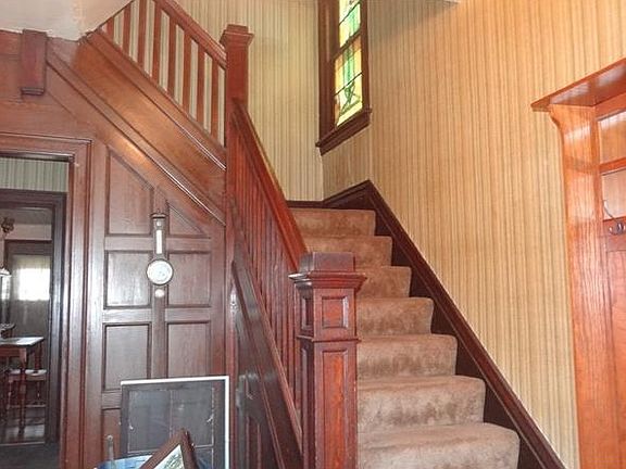 Large Home with Many Larger Rooms. Eat In Kitchen. Pocket Doors. Dining Room with bump out and built in cabinet with ornate glass panel doors. The Dining Room is currently being used as a bedroom- next to the Full Bath. This home is a converted duplex to a single home residence. The upstairs still has an optional Kitchen and a Den, that could be used as a fifth and sixth bedroom. The home has a full bath on the main level, along with the upstairs full bath. There are a few stain glass windows. Relax on the front and back porches. Fenced in level back yard. If the fence was altered, off street parking could be had. The home has nice wood features. With a little TLC, this home could be grand again.