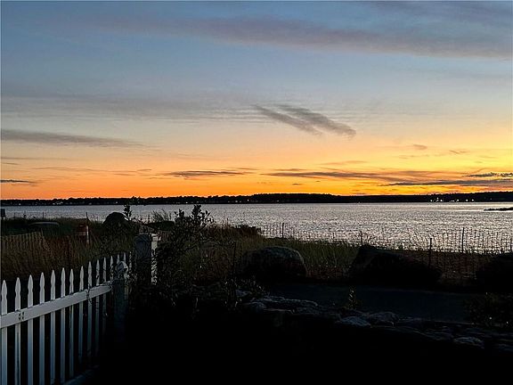 Don't miss out on this once-in-a-generation waterfront property just steps from the beach at the mouth of Brushneck Cove with 120 degree southern and western exposure views of Greenwich & Narragansett Bay! Introducing 31 Strand Ave which is a lovely renovated 2bed/1 bath Cape with large 19 x 37 ft outdoor deck to soak in gorgeous sunsets and views year round. This adorable year-round retreat boasts floor to ceiling windows and skylights which give the home abundant natural light throughout the day. First floor primary bedroom with walk-in closet. Stunning wood ladder from an actual yacht to lead you to the lofted bedroom with additional space to dormer out. Bonus separate detached studio with AC and pellet stove heat ideal for artists studio, home office, or overflow for weekend guests (no current plumbing). New outdoor shower and double heated attached garage with front and back doors. Beautifully manicured 10,000 double lot with white picket fence and stone walls make this New England gem one you will love forever. New walking/biking path only steps from Iggy's and Top of the Bay restaurant and outdoor bar. Current flood insurance $3,028/year. Town water/sewer and gas heat connected. Very special! **H&B OFFERS DUE BY MONDAY, 10/16 at 5pm**
