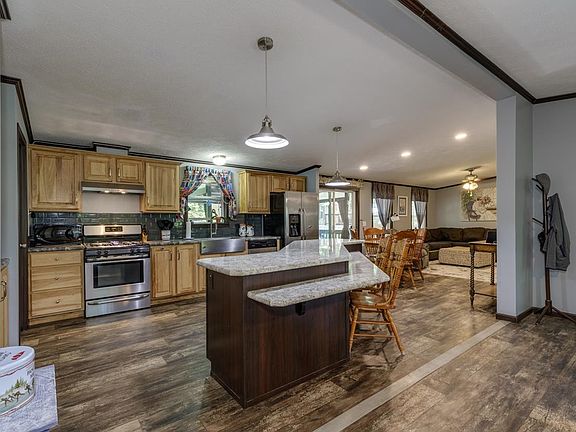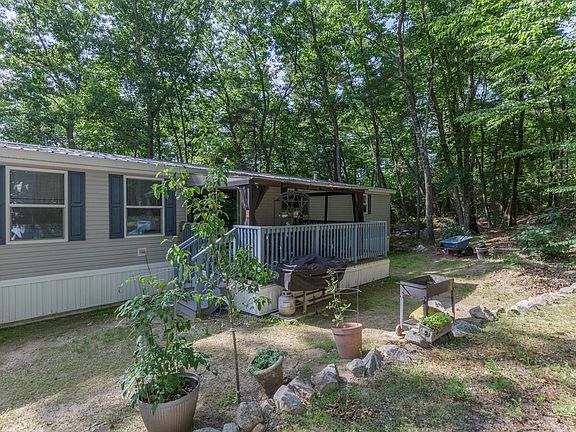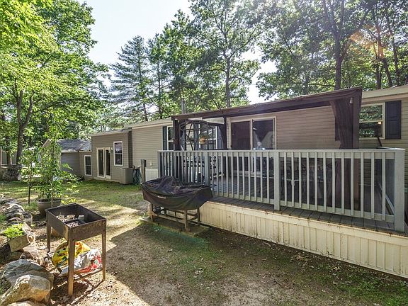 You will love the spacious feel of this very well maintained 2017 28 x 60 Commodore model with 10 x 20 partially finished breezeway/mudroom and attached 28 x 14 garage with 4' loft in Bear View Crossing Co-Op. One level living with cathedral ceiling and ceiling fans really open up the space. Step into a generously sized dining area that can accommodate a large table with leaves and a hutch. Kitchen boasts a huge 2 tiered island, Birch cabinets with tile backsplash , SS farmers sink along with SS fridge, DW , gas range and counter micro and outside venting hood fan. Don't miss the walk in pantry with 2 doors! Durable and attractive wood look vinyl flooring throughout is easy care. Hard cover screen house on deck offers summer outdoor living right off of your Living room/dining area. The primary bedroom has an ensuite bath with walk in shower and soaking tub. 2 other bedrooms are on the opposite side of the house, along with another full bath and a separate Laundry room with sink/counter and more storage. Enjoy the privacy of being the last lot on the street with woods and trails behind you. Pets are allowed. $100 Park application fee applicable with $300 one time buy in fee. Location is close to Sully's Market and abuts Bear Brook State Park. An easy commute to Manchester or Concord. Open house Sunday 12-2pm .