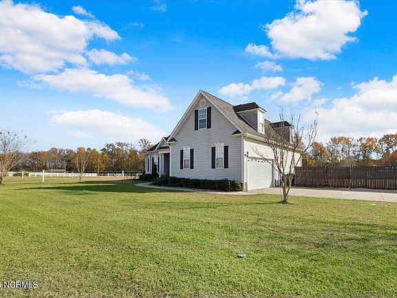 Custom built home on 2+ acres! Horses allowed! Open living room with built ins and gas fireplace. Separate formal dining room with tray ceiling and breakfast nook off of kitchen. First floor spacious primary bedroom suite with walk-in closet, separate tub, and shower. Upstairs boasts a large open flex area with 12 ft ceilings, theater room and two additional bonus rooms that could be used as bedrooms. Enjoy outdoor living on the screened porch overlooking the large fully fenced backyard. Three large pastures and one smaller pasture all with electric fencing. Four horse stalls and feed room with storage. Conveniently located 10 minutes to HWY 70 and I95, 35 minutes to Raleigh.