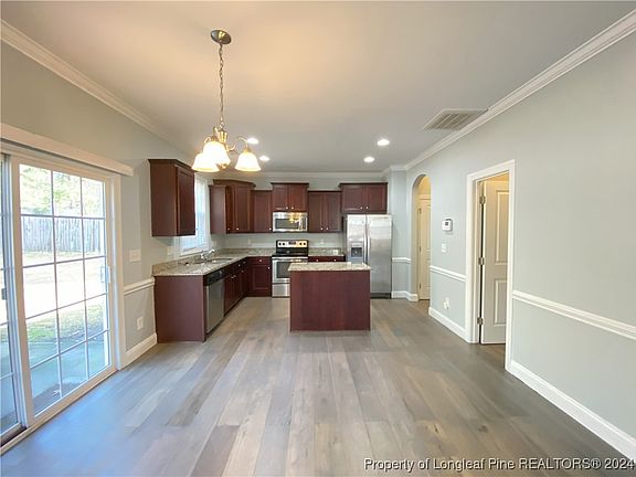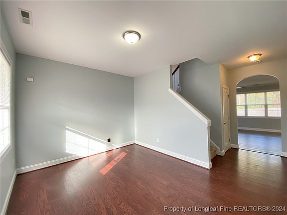 t 4 Bedroom 2.5 bathroom home for rent in OVERHILLS CREEK of Harnett County. This home sits on large acre lot an a cul-de-sac street and has a double car garage. The backyard is fully fenced and has a patio, firepit and rear storage shed. The first level has a front formal dining area or office area with wood floors. The living room and kitchen are open and have new plank flooring. The kitchen has tall 42" cabinets, a center island, granite countertops and large pantry. Upstairs you will find the owners suite with carpet, walk in closet, double sink vanity, large shower/tub combo. Upstairs you will also find a laundry room, 2nd full bathroom, and 3 additional bedrooms. 4th bedroom has extra room. The 3rd floor has a large walk in attic space for storage. Pets upon approval with non refundable pet fee. PM:Sharon More photos coming soon