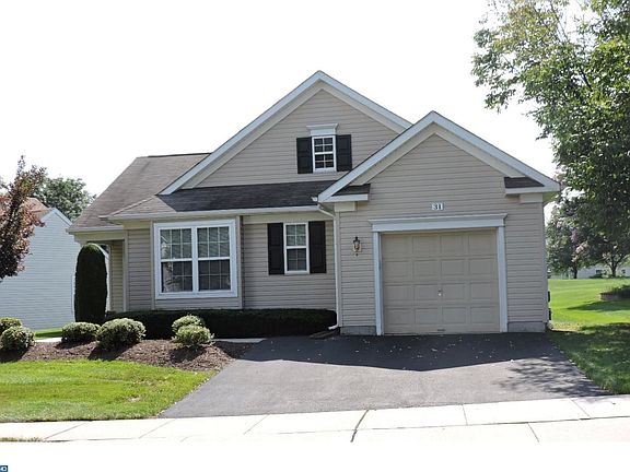 Super clean single family home available in Langhornes most popular 55 community - the Villages of Flowers Mill. Take advantage of this well-priced ranch home and enjoy the wonderful lifestyle. An entry foyer with hardwood floors and coat closet opens to the generous Living and Dining Rooms, both with cathedral ceilings. A gas fireplace is the focal point of the bright and sunny living room, which includes a ceiling fan, and a french door to the rear patio. The spacious eat-in kitchen boasts an abundance of oak cabinetry, gas range, built-in microwave, dishwasher, and refrigerator. The main bedroom offers a huge walk-in closet, ceiling fan, and private bath with double vanity and tiled floor. Second bedroom also has ample closet space and a ceiling fan. Both bathrooms have ceramic tile floors, oak vanities, and medicine cabinets. A laundry room is complete with washer and dryer and exits to the garage with shelving and remote door opener. Neutral decor and lots of windows throughout allows for bright and cheery living. The patio overlooks the large open back yard. Ideal location, close to I-95 with easy access to shopping, dining, and top medical facilities.