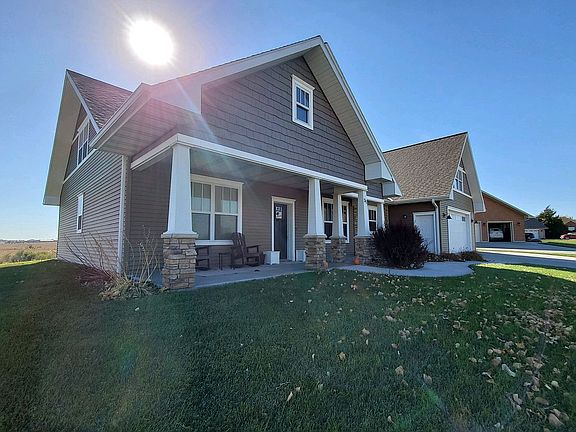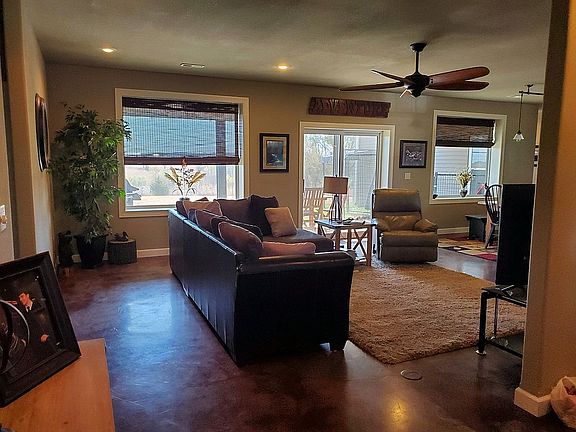 BEAUTIFUL OPEN CONCEPT GEOTHERMAL HOME IN EAST HILLS ESTATES! Built in 2011, this energy-efficient home overlooks a pond and the sprawling countryside. The moment you enter the front door you are drawn into the gorgeous home, not only by the breathtaking views but also by the beautifully stained concrete floors throughout this home. The large living room opens up to the bright kitchen, complete with stainless steel appliances, Corian countertops, and a large island with seating. This area is also large enough to accommodate a good size dining or kitchen table. The screened-in porch is where you will spend many nights entertaining or just enjoying the view. This overlooks a 1/2 court basketball court, and patio. Master bedroom with ensuite bathroom and walk-in closet, 2 more bedrooms, an office, and laundry complete this floor. Upstairs you will find a large bonus room and bath. Perfect for additional entertainment space or bedroom if needed. An all concrete safe room is housed in the garage. Once you walk into this home, you won't want to leave. The neighborhood also boasts a clubhouse with a saltwater pool and exercise room which you will have plenty of time to enjoy due to the HOA lawn care and snow removal! Don't wait!
