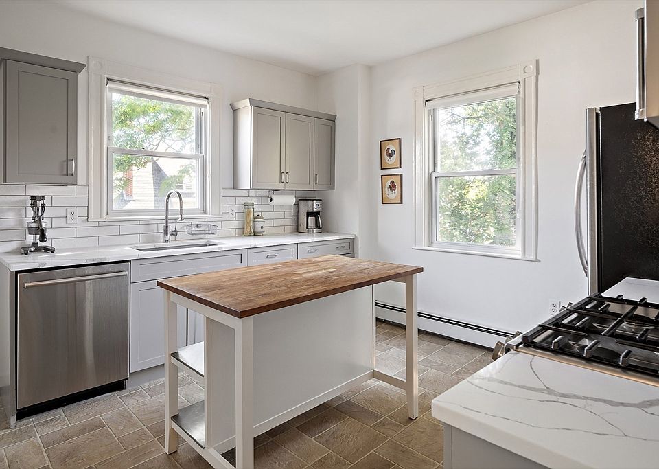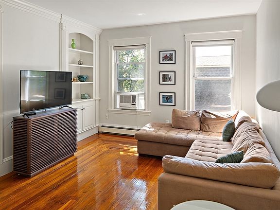 Over 1,100 SF 2 bed plus den, 2 car deeded parking in driveway, 1 bath 2nd flr condo, popular neighborhood, minutes from bus stops, the green line, shops and restaurants including Sarma. Area amenities within a mile include the Somerville Community Path, High School and YMCA. Kitchen renovation 2018 boasts quartz countertops, tile backsplash, neutral cabinetry & Bosch appliances including a gas range with built-in microwave, plus pantry and convenient in-unit laundry room. Front facing den with bay window welcomes natural light. 2 sizable bedrooms. Welcoming living room with dining area. 2013 updated bath. Hardwood floors & brand new shades throughout. Large private storage unit in the basement. Enjoy common outdoor space and 2 deeded driveway parking spots, a valuable feature. Recent building updates: complete updated insulation in 2014, exterior paint in 2018, new roof in 2022 and a high efficiency Buderus gas boiler with baseboard heat installed 2013. WalkScore 90