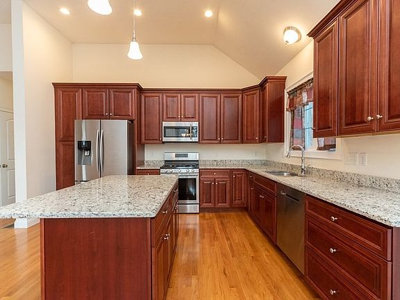 WOW! This 6 yr young Fossile-built home has a beautiful open & spacious floor plan featuring a gorgeous Cherry kitchen with granite countertops, center island, breakfast bar & stainless steel appliances. Large living room with vaulted ceiling opens to kitchen & dining areas. All 3 rooms & hallway have handsome hardwoods. Large main bedroom with walk-in closet & private bath with tile flooring & granite vanity. Two additional generously-sized bedrooms & full bath enhanced by tile flooring and granite vanity complete the main level. Wood stairs with nice open railings and tile floor landing leads to an oversized finished lower level complete with entry to two car garage, a third full bath with tile and granite & front-to-back bonus room with lots of natural light. Great space for family room, playroom, guest suite or home office. Professionally landscaped private yard. Great commuter location and walking distance to downtown Hudson, which last year was voted Best Main St in USA! Hurry!!