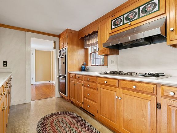 Character and charm is abundant throughout this quintessential antique. If garage space is what you seek this is the one for you! 5 detached garage bays placed on the flat one acre lot, ready for your projects. Natural light gleams throughout the home. On the first level you will find two generous size bedrooms with plenty of closet space and wood floors. Through the kitchen you will find a formal dining and living room each complete with a fireplace with cast iron fixtures. The porch off the livingroom is unheated, yet insulated to allow for multi season use. Upstairs you will find a full bathroom with soaking tub and another bedroom. Beyond the bedroom is additional unfinished space currently used as storage - ready for your finishing touch.