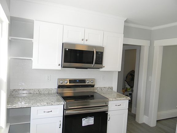 - Features: Flooring - Vinyl, Countertops - Paper Based, Remodeled, Stainless Steel Appliances, Crown Molding
