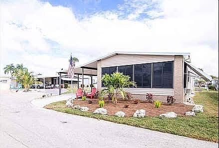 Wow! This home is in move-in condition, turn-key furnished and just what you've been waiting for! New laminate vinyl plank flooring in the dining room, kitchen, hallway and guest bathroom - no carpet. Open floor plan with spacious dining, kitchen and living room areas. The kitchen has been updated with a classic black and white color scheme, accented with a contemporary green flair and includes stainless steel appliances and a barista station. Living Room has access to the raised lanai through stylish French doors. You will like the natural light supplied by the solar tube in the dining room area as well as the designer lighting and ceilings fans throughout. The master bedroom is huge and is large enough to include a sitting area next to two large picture windows. Both bedrooms have walk-in closets and both bathrooms have been updated. The entrance has a built-in desk, upper cabinets and optional inside washer/dryer hook-ups. Raised lanai has vaulted ceilings fan, acrylic windows and a dedicated air conditioning unit expands the living space of this home. Outside covered patio behind the storage shed can also be used for golf cart parking. 2020 Improvements: Hunter X-Cor Digital irrigation system with rain sensor, Stanley Steamer air handler & whole house duct/vents cleaned, UltraVation Germicidal double bulb in air conditioner and AC maintenance. 2019 Improvements: new 3 Ton Goodman central air conditioner (10 yr warranty), new Honeywell digital thermostat, new Underhome Armor vapor barrier 2018 Improvements: New AOC Smith 30 gallon water heater with HeatGuard Tank Booster. Other Improvements: HALO5 Three stage whole house water filtration & conditioner, surge protective device installed in electrical panel, hot water heater thermal expansion tank. Storage shed has front load clothes washer & dryer. Nice landscaping with golf cart driveway and dedicated parking. AMS roof over with lifetime warranty installed in 2009. Easy care vinyl siding. Turn key furnished. This home is in a very active, 55+ community with many clubs, sports and activities for the residents. Amenities include two swimming pools, three clubhouses, hot tub, sauna, state-of-the-art fitness center, library, billiard room, shuffle board, tennis courts and pickle ball courts. HOA fee includes: site lease, water/sewer, trash/recycle, lawn mowing, basic cable, 24 hour attended gatehouse and access to all community amenities.