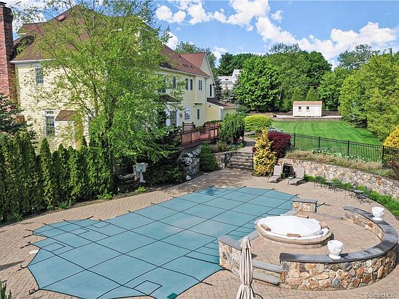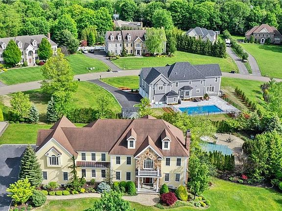 A masterpiece in Trumbull! Expertly crafted with exquisite millwork throughout by renowned local builder Sherwood Homes. Enjoy a staycation in your own backyard paradise (in-ground pool, hot tub, patio, trex deck, landscaping)! Stunning chef's kitchen w/custom cabinetry, top of the line appliances, gleaming granite counters, eat-in area, and large walk in pantry. Thoughtfully designed family room featuring gas fireplace with stone surround, and beautiful built-in cabinet. Massive formal dining room w/tray ceiling and fantastic wet bar area. Formal living w/fireplace that can be used with gas insert or wood burning. Mudroom space with half bath + 2 walk in closet spaces w/custom cubbies. Stunning and spacious home office w/coffered ceilings and wainscoting surround. Palatial primary suite with soaring ceilings, enormous walk-in closet, and spa-like bath. Oversized laundry room with convenient storage area. Two remarkable guest bedroom suites, and two more lovely bedrooms sharing a jack and jill bath round out the 2nd floor. Have your own movie theater experience at home in the state of the art media room w/stunning surround sound, custom raised seating, built-in cabinets, and bath. The impressive lower level features a playroom, full bath, full size kitchen, ample storage, a 2nd laundry area, and access to a 4th garage bay, perfect for car enthusiasts or to store pool/lawn equipment. Expansive 3-car garage w/bonus storage space attached and direct access into the basement.