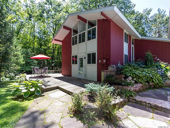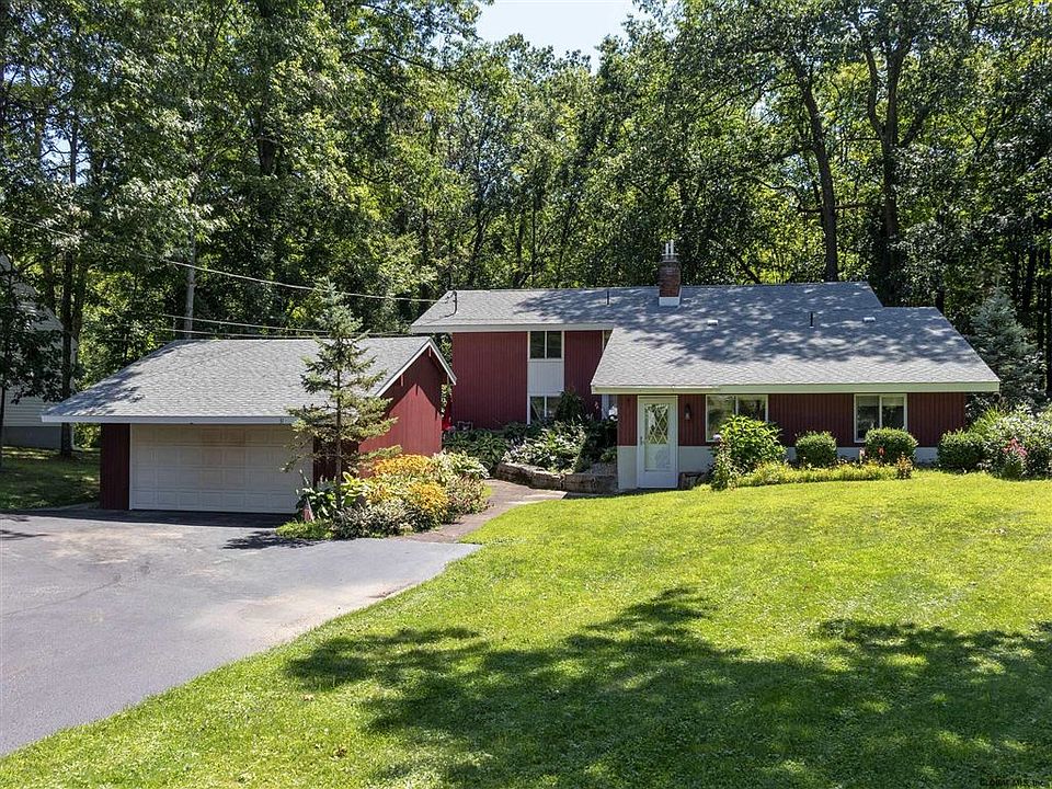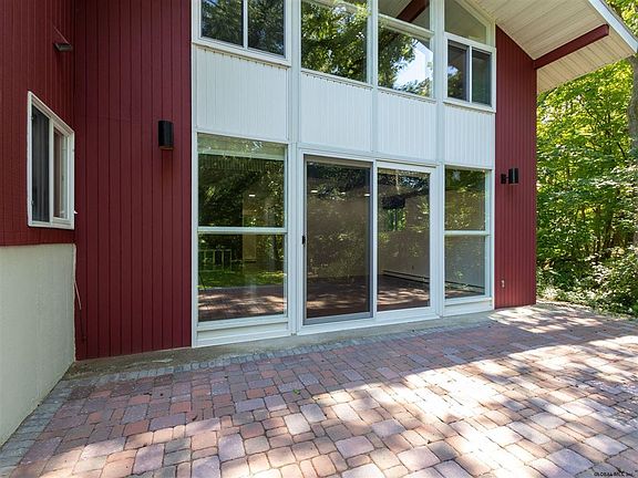 One of a kind contemporary home with an in-law apartment with separate utilities! Perfect for multi generational living. Light filled with soaring windows and ceilings, Oscuro Tigerwood flooring, efficient kitchen with cherry cabinetry opens to large dining room, large living room with wood burning fireplace, floor to ceiling windows & sliders that opens to the patio. Master bedroom with it's very own wood burning fireplace, spacious bedrooms with built-ins and more. New Reverse Osmosis Culligan water system, newer furnace, windows, & flooring. Entire house freshly painted and ready for you to move on in! Private lot, surrounded by mature landscaping and wildlife. Great location & walkable neighborhood. Easy access to all major highways & shopping. East Greenbush Schools!