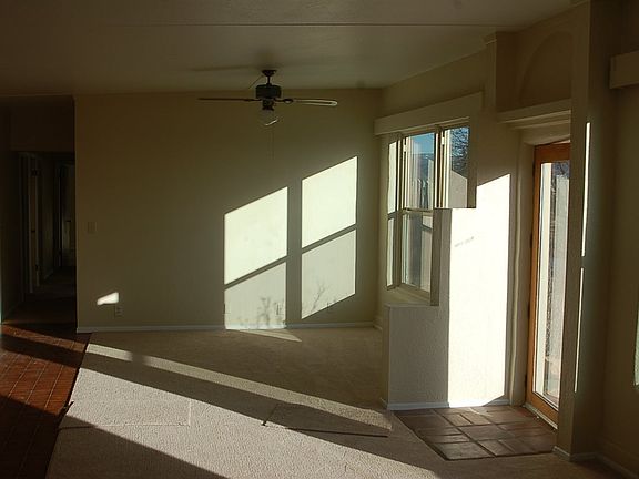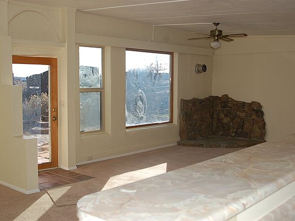 Light-filled passive solar, pueblo-style, bermed home on 3.28 gorgeous acres w/360 views. Nestled high above the neighbors and hidden from the road with great privacy, this home has new paint, carpet, open concept living room/kitchen, separate car port with a large shed and great areas for gardening! This home is eligible under Freddie Mac First look through 2-23-2017.
