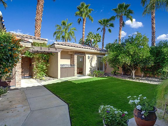 Excellent Location on Palm Desert- Located in the gated community of Palmira - minutes to major schools, shoppings and restaurants. This home has a nice open floorpan with 4 bedrooms, included a detached casita, plus an office which can be used as a fifth bedroom - large living room, family room, beautiful island kitchen and separate laundry room. The third bedroom is an attached casita as it has its own entrance from courtyard. two car attached garage. This home is leased furnished per inventory.