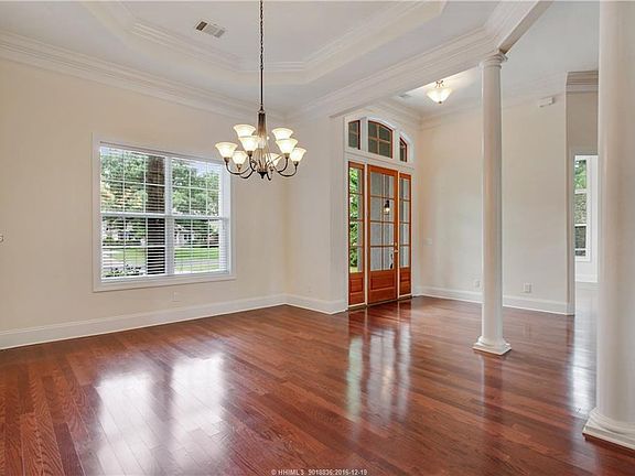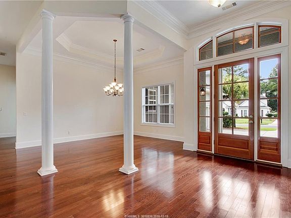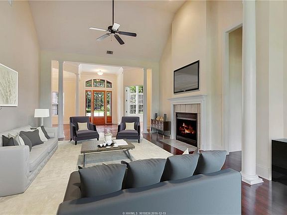 You enter the foyer to soaring ceilings and wide open spaces. Library/office, dining room, large living room w/fireplace and additional sitting area. Walking on the Hardwood floors, you enter an expansive kitchen w/island and the adjacent great room creates area for entertaining family and friends. First floor Master suite has 2 closets and large bathroom. Calming views across the 18th fairway to the marshes of the Colleton River. 586 sq. ft. Bonus room above 3 Car Garage has full bath and plenty of room for 4th BR plus. Gated Community located close to all services. Welcome Home!