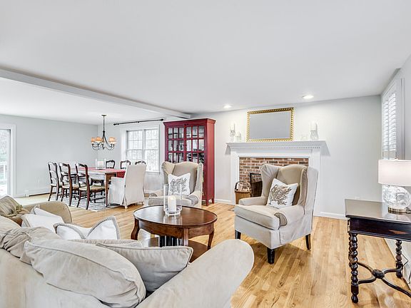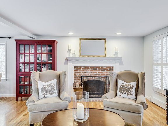 Just in time for the Holidays! This beautifully updated colonial is located off scenic Old County Road in the desirable neighborhood of The Village at Old County in East Sandwich. Set on a .9-acre wooded lot with a long driveway, this home offers exceptional backyard privacy. The first floor has a wonderful flow, great for entertaining features a bright, open kitchen with granite countertops, stainless appliances, a center island, a pantry and coastal white cabinetry. Opens into the dining and living room with hardwood floors and a wood-burning fireplace. A cozy TV room with French doors, plantation shutters and new carpeting. Convenient 1/2 bath with laundry on the 1st floor. Vaulted foyer with a gracious staircase leads upstairs to a large primary suite with walk in closet and private full bathroom plus 2 more bedrooms and a full bath. Recent updates include a new roof, garage doors, water filtration system, well pump, fresh interior paint, slider, and storm door. Additional features include a 2-car garage, finished basement and shed. Conveniently near Sandy Neck, Rte 6A & Rte 6 for an easy commute. Walk to Talbot's Point, a 112-acre conservation area with amazing walking trails