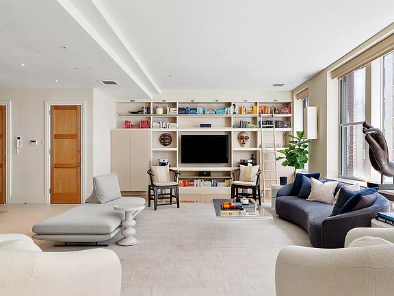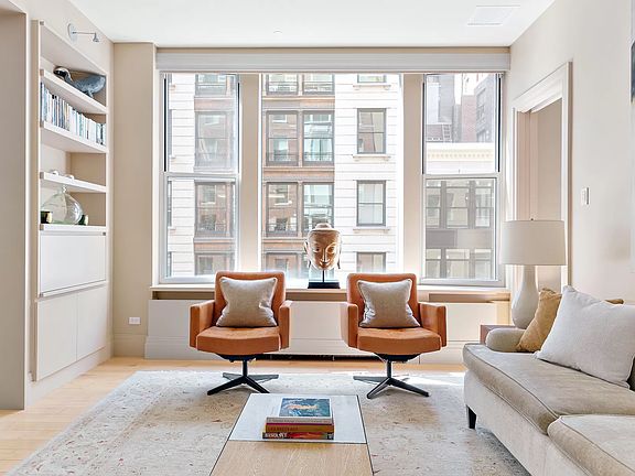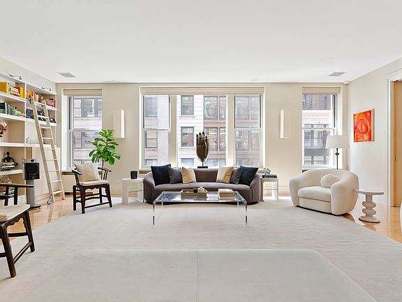 Spanning 4,713 square feet with a show stopping 50 feet of south facing frontage, loft no. 6 at 31 West 21st Street is a fully renovated 4 bedroom condo in the heart of the Flatiron District. Defining features of this massive property include 10.5' ceilings, original concrete columns, extremely low monthlies and a crisp renovation ready for its next owner. Off the keyed elevator is the loft's grand foyer. Walls of south facing windows set the tone for this extra wide and dramatic space. The 28' x 18' great room features a bay window, floor to ceiling millwork and a large entertaining space. Adjacent to the great room is another public space currently used as a den / library and home office. Flanked by a guest bedroom and a full bathroom, this room can easily be closed off by pocket doors in order to function as expansive guest quarters, or one can leave it open as a large extension of the living space. Beyond the living space is a formal dining room fitted for a 10+ person dinner party. Large scale art walls and an adjacent 12' long bar with a 75-bottle wine chiller help define this dramatic entertaining space. Beyond another set of sliding doors is the 26' x 20' chef's kitchen. Offering commercial kitchen caliber proportions, this huge space features a state of the art appliance suite including separate full height Sub-Zero refrigerator and freezer, double Wolf ovens, butcher block + granite countertops, classic shaker style cabinetry and millwork, an adjacent eat in dining table w/ built in banquette and a substantial home office area with endless storage. There is also a fully equipped laundry room right off the kitchen which features vented appliances, a utility sink and three large closets that can also function as a pantry. Beyond the kitchen is a large family room or den, which is the center point for all of the loft's north and west facing bedrooms, all of which enjoy a quiet courtyard exposure. The corner primary bedroom is massive, measuring 15' x 21' and features of wall of north and west facing windows, a 9' x 9' dressing room and a fully fitted out walk in closet. The primary bath is clean and crisp with limestone tile, double custom vanity, separate walk in shower and a deep soaking tub for two. Three more bedrooms, two more full bathrooms and five large closets complete the private quarters of the home. Additional features of this former warehouse loft space include central A/C + heat, a mud room off the foyer, a powder room, Crestron home automation and Lutron controlled lighting & window treatments throughout. 31 West 21st Street is a discreet, boutique loft condominium with only 11 units, a full time super, a key locked elevator supplemented by a service elevator, and a substantial building video security system.
