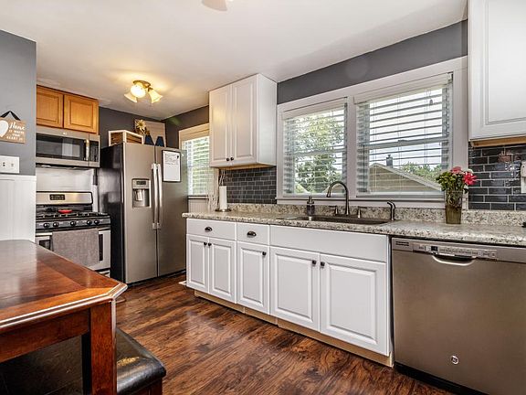 Neat 3 bedroom home in good location with large attached garage, fenced yard, on a corner lot. This well maintained home has had many updates including remodeled kitchen 2018, new roof 2017, new furnace 2018, new electrical service and box 2015, new fence 2017, and many of windows have been replaced. Inside on main level is kitchen, dining area, 3 bedrooms and a bathroom. Downstairs in the full unfinished basement it is open and has access from inside the home or a ramp down into basement from the attached garage. Garage is big enough for 2 vehicles, but has a 1 car door. Fenced back yard with fire pit and a large patio area. Call today to take a look.
