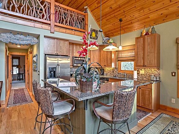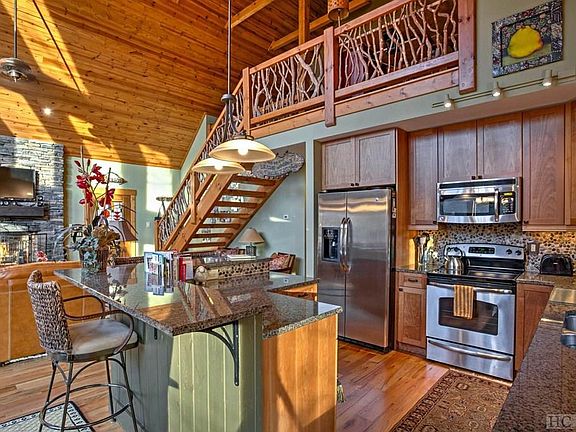 Nestled on a wooded lot at an elevation of over 4000 feet in the Great Smokey Mountains, this 10 year old cottage will sweep you away. There is a stair-less entry to the main floor, which makes this home easily accessible. 3 bedrooms and baths, with a master on the main floor and upstairs. The living room, dining room and kitchen are open and focus on a beautiful stacked stone fireplace that has gas logs or could be converted to wood-burning. Details are well thought out with custom cherry cabinets and built-ins, granite counters, stainless appliances, hardwood floors and stained glass front door. The upstairs loft provides another sitting area as well as a home office space. Sliding doors open to the deck where you can enjoy some mountain view, or you can relax on the covered porch. This home is currently in a rental program with excellent rental history. It is being sold turn-key - completely furnished down to linens and silverware with the exception of some personal art and accessories. The inspection has already been completed. This is the best buy in Wildwood Forest and with future rentals booked, you will have income to cover expenses.