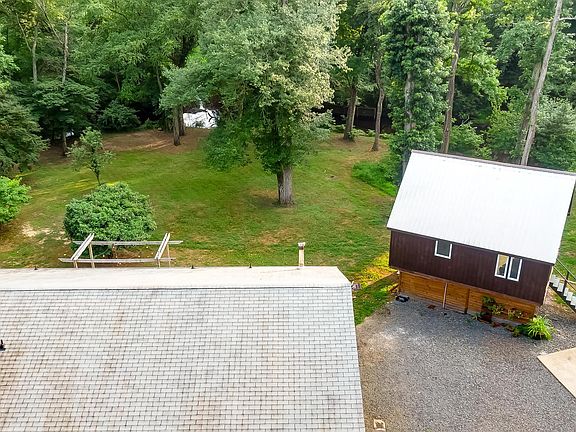 This stunning ranch home that has a potential of being a 5 Bedroom home is infused with rustic decor, comes with an additional one-bedroom, one-bath apartment, offering two homes for the price of one on two spacious lots, totaling 1.12 acres. The exterior features low-maintenance vinyl siding, a craftsman wood front door, and a maintenance-free deck, perfect for enjoying the beautiful surroundings. The family room is a true highlight with exposed beams, high ceilings, a striking stone wall, and breathtaking wood ceilings. The neutral-colored wood plank flooring adds to the warm, inviting atmosphere. Step into the rustic kitchen, complete with wood cabinets, charming wood countertops, and a ceramic tiled backsplash. Stainless steel appliances, rustic lighting, and a ceiling fan complement the vaulted ceilings with skylights and wood beams. The unique diagonal design of the tile and plank flooring enhances the kitchen's beauty. French doors lead to the outdoor deck, an ideal spot for morning coffee, barbecues, and entertaining while overlooking the picturesque grounds. The primary bedroom features high ceilings and French doors that open to the maintenance-free deck. the additional bedrooms have casement windows, carpeting , plenty of closet space, attic space currently set up as an additional bedroom offers you even more storage. Between these 2 properties you are getting a whole lot of house, rooms, storage & beauty for the money. The laundry room is designed for functionality, offering ample cabinetry and shelving for all your storage needs. The primary bathroom is definitely unique & one of a kind. It has antiqued wood looked walls, a one of a kind his & her separate wood vanities with free standing faucets & bowls that look like buckets. The double door frosted etched glass shower doors with ceramic tile surround and at the bottom of the tub is a faux stone front. The additional bathroom includes a stall shower with a full surround for easy cleaning and a neutral color palette. The separate apartment is equally impressive. The living room boasts an accented wood wall and two floor-to-ceiling windows with stunning views of the nearby stream and gazebo. The bedroom features a different colored accent wall, a ceiling fan, a kitchenette with vinyl plank flooring, and a charming curved staircase. If you love nature, this property is perfect for you. With its blend of rustic charm and modern amenities, this home is sure to blow your mind. Schedule a tour today and experience the magic of this extraordinary property!