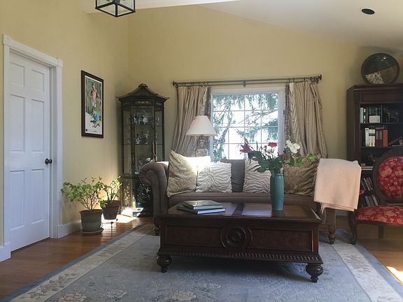 Immaculate 3 bed/3 bath house, 1949 foundation was totally renovated and expanded in 2010. Boasting 2 fire places (one in the living room and one in the master bedroom suite), a new wood stove in a large sunny kitchen with cathedral ceiling and skylights, granite counters and new Viking cooking range, formal dining room with French doors opening to a covered porch, this house surprises with its open, well-arranged spaces. New central A/C and 2 new furnaces, hardwood floors and marble tiles, finished basement with modern ceramic tiles and brand new washer and drier, 4 car garage, carefully maintained septic system, new oil tank and new well with top of the line water filters, the house is pristine and requires no work at all.Located on 1.5 acres of well-manicured lawn and beautiful flower garden, it is one of the most comfortable, spacious, and well-arranged houses one could imagine.