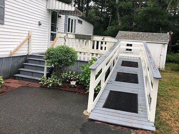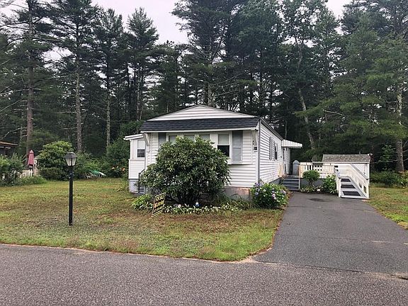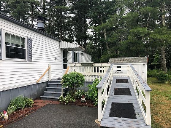 Welcome to Cranberry Village a 55+ manufactured home community nestled in the quiet woods of Carver yet centrally located to all the amenities in nearby Plymouth and Wareham. Thoughtfully updated over the last 10 years, this 1980 14' x 70' Redman with toasty warm 3 season porch for additional living space has 2 bedrooms including master with convenient half bath. Sunny and bright maple cabinet kitchen with new electric cooktop and oven; 50 yr warranty roof installed in 2015, new windows, kitchen door and kitchen in 2010, new furnace, carpet and porch in 2011 and new water heater in 2015. Nice large driveway side handicapped deck/ramp as well as age in place updated full bath. Cozy wood burning fireplace for cool fall or spring days. Said to be one of the larger lots in the complex, this level lot features many perennials (tiger lily, hosta, hydrangea and rhododendron) and backs up to wood land for even more privacy. Large side lot off of 3 season room invites second deck options.
