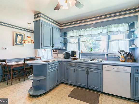 California ranch home in desirable small town Strasburg neighborhood. 1-story living. Open floor plan. Retro kitchen plus formal dining room. Large living room with lots of windows and stone fireplace. 3 Bedrooms. Finished lower level Family room for entertaining. 3-season sunroom. Hardwood floors under carpeting. New roof August 2020. Central air. Beautiful tree-lined flat backyard. Garage and wood shed. Extra storage.