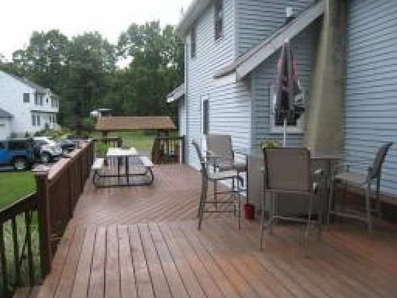 SHORT SALE...FABULOUS DEAL! very special, very charming renovated farmhouse located in a tranquil wooded setting. this 4 bedroom home is meticulously maintained with beautiful hardwood, great colors & decor, large bedrooms , wood burning stove & lots of storage. also features a rocking chair front porch, oversized backyard deck (45x15) & full basement w/above ground oil tank. there are two oversized sheds on the property, as well as a huge driveway, which can easily accomodate 10 cars.