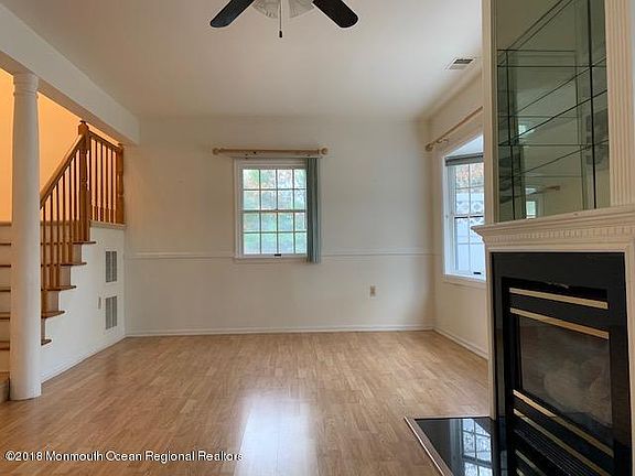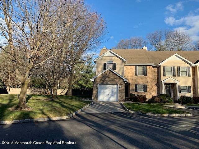 Location! Location!! Location Open and Spacious end unit boarder large open side and back yard. Partial furnished with all bedroom sets, living room sofa set and dining set. Gourmet eat in kitchen with newer stainless steel refrigerator, Dining room open to large great room. Sunken Family room with mirror fireplace and sliding door opens to private tree yard. All wood floor on 1st level. Master bedroom with cathedral ceiling and sky light. Large master bath with Jacuzzi and over size counter and wall mirror. Two bedrooms with large walk in closets and ceiling fan. Excellent Holmdel schools, minutes to major highway, train station, ferry, offices and shopping. Rare opportunity to rent an excellent property in mint condition at heart of Holmdel. No pets, minimum one year lease.