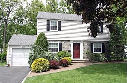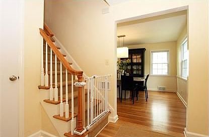 A BEAUTY! Major curb appeal w/ paver walk and lush landscaping. Stone facade. Foyer w/ dramatic staircase, coat closet. Form Din Rm w/ wd flr, chair rail. Liv Rm w frt/rear views: lots of sun shines in. Also, wd flr, recess lighting and crown molding. NEW Cook's Kit has wd flrs, granite over wd cabs, tile backsplash, all SS appli: including a 4 burner gas oven/range , new Fr. slider door opens to the party sized deck w/ gas line and open level fenced yd. New Powder Rm w/ wainscoating, chair rail, and new fixtures. 2nd Fl: Master Bed has wd flr, WI Closet, front and side views. 2 other lg Beds w/ wd flrs. New High End Hall Bth w/ tile, shower over tub, marble vanity. LLevel: Rec Rm w/carpet, wd panel walls. Laundry/Storage/Utility Rm. 2 car width driveway and 1 car Garage. Many new updates! Great location for commuters.
