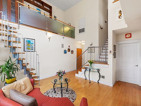 Natural light abounds in this beautiful 2 bed / 2 bath unit! Enjoy the sunset after crossing the street to get some snacks at Trader Joe’s! Featuring 2 floors with 20’ ceilings, TWO private balconies, in-unit laundry, central air, wired sound system, updated tankless for heat / hot water, and deeded garage parking & bike storage! A finished loft space offers built-in California Closet storage, Murphy Bed, and office area, all accessed from the living room by an Italian-made spiral staircase. Main living area has an open concept living/dining/kitchen with hardwood floors and newer appliances! Both bathrooms are adjacent to the bedrooms, with the downstairs bath having an entrance through the common area and another through the bedroom. Upstairs is the primary bedroom with a 2nd private deck & adjacent bath. It’s rare to find a place with sunset & stargazing views right from your deck in Cambridge - all with Fresh Pond & Alewife close by! Well managed HOA with low fees & low taxes.