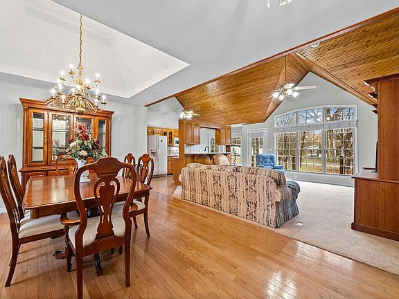 Peaceful location and only 2 miles to Kentucky Lake and launching and Houston County airport being even closer! Welcome Home to this lovely maintained beauty. Spacious open floor plan, gorgeous tongue-N-groove vaulted ceiling, new granite tops, custom cabinets, newly painted interior throughout and Western Cedar exterior stained 2025, as well. Bonus room on the second level. Find a covered front porch, nice open back deck, level lawn all around home and driveway set back off the road. From the front entry, you find the dining room open to the spacious gathering area, a divider bar to the kitchen area along with pantry and the breakfast area at the beautiful bay window. Nice and bright with loads of windows to enjoy the outdoors. Primary suite offers private bath with whirlpool tub, step in shower, double vanities and a walk in closet. Split bedroom plan, laundry room off of kitchen and access door to garage. Hardwood, carpet and vinyl flooring. Bonus room on upper level. Comfortable!
