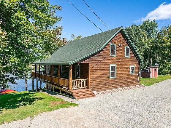Stunning log cabin offering one hundred and sixty five feet of waterfront on Weymouth Pond! This home sits just twenty six feet from the water. Enjoy privacy and country living with the house sitting about eight hundred feet off the main road. This home offers extraordinary craftsmanship. It has multiple heat systems such as radiant heat, a heat pump and two wood stoves. It has a fabulous wrap around deck to enjoy your morning coffee on. Please take notice of the large detached garage with storage above! Schedule your showing today!