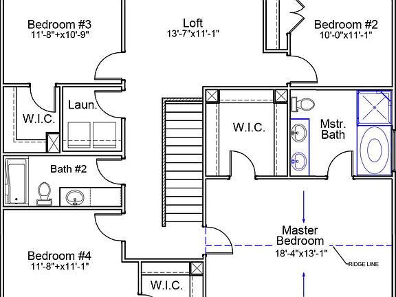 This McDowell floorplan is a two-story home has 4 bedrooms and 2.5 bathrooms. Immediately inside the entryway, the family room leads into the kitchen and eating area. A flex space behind the eating area can be used as an office or play room. Upstairs are three spare bedrooms, two with walk-in closets, that share a full bathroom and a convenient laundry room. The primary bedroom has a vaulted ceiling, large walk-in closet, and primary bathroom with dual vanities and separate garden tub and shower. There is a loft space right as you come up the stairs as well.