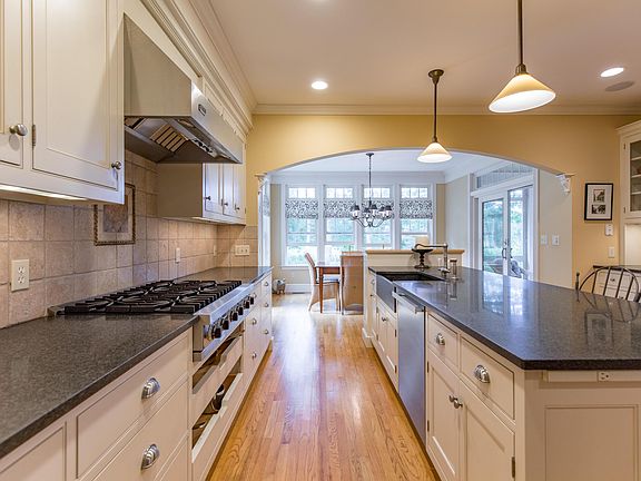 This stunning shingle style custom-built home by Dave Rogers boasts unparalleled attention to detail and unmatched craftsmanship for ease of living. Create in the pristine kitchen with Cook and Cook cabinetry and Viking appliances which opens to the inviting great room with wood burning stone fireplace and access to the outdoors. Gather in the formal dining room with exquisite wainscoting and work from home in the private office with French doors and a wall of custom built-ins. Upstairs is a master ensuite with cozy gas stove, tile bath with double vanity, luxurious soaking tub and separate shower, and walk-in closet. There are 3 additional bedrooms, a spacious family room over the 3 car garage, and an office/study area on the second floor landing. This easy floor plan flows flawlessly from indoor to outdoor spaces including a beautiful wrap-around porch, deck and outdoor shower all on nearly 2 acres of land. The recently painted property also includes a charming studio with bathroom over the 1 car garage. Enjoy this private location with beautiful landscaping and the convenience of being close to shopping, town and award-winning schools. Must-see!