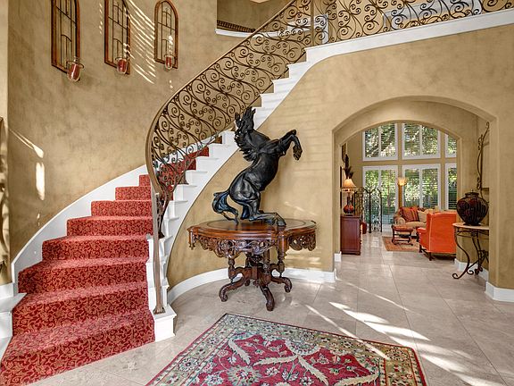 Stunning David Jones Custom Mediterranean is situated on a prime cul-de-sac lot, backing to the greenbelt! Inside you will find perfectly proportioned living areas, soaring ceilings, faux painted walls, multiple staircases, balcony, windows covered by plantation shutters, formal living room with grand cast stone fire place, formal dining, downstairs game room and wet bar with wine storage. Private office, elegantly appointed master suite with tiered ceilings and sitting area and lavish bath! Upstairs living with three private guest bedroom suites and huge storage closet! Backyard paradise with covered and open patios, sparkling pool with rock waterfall, spa and well-manicured lawn! Unrivaled in every detail, this unique estate impresses at every turn.