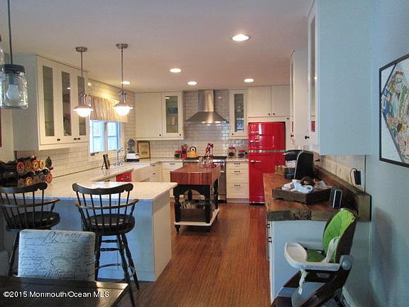 Get ready to fall in love! This charming home is a delightful blend of modern and vintage amenities. The kitchen has been updated in great style and imagination, must see to appreciate. The dining room opens to the deck and pergola, bringing the outside indoors. Don't miss the Koi pond and built in gas grill for outdoor enjoyment! A large living room with fireplace and decorative beamed ceiling adds to the easy first floor plan. Don't delay seeing this true Little Silver treasure!! Easy commute by train, GSP and ferry.