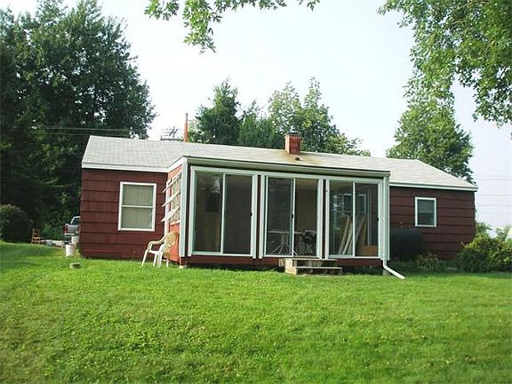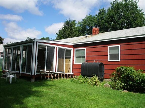 This is a great little slab ranch house with a nice private yard. Living room/Dining room combination is large and is highlighted by an attractive brick hearth with an electric stove resembling a small wood stove. Furnace is an oil-fired central hot air unit. A full 12" of blown-in insulation has been added to the attic to significantly limit heating costs. Good sized utility shed available in backyard. Large 3-season enclosed porch on the south side is a very pleasant space complete with ceiling fan, 5 sliding glass doors, crank-opening windows, and a built-in utility room for extra storage. Great commuter location to Worcester. Walking distance to both Leicester Middle School and Leicester High School. Leicester Senior Center is across the street. Three bedrooms are grouped around a short central hallway along with the full bath. There is a laundry area off the kitchen. You will find a pleasant life style here.