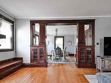 Quiet, cozy, beautifully furnished 3-bedroom single-family house. - Eat-in kitchen with hardwood cabinets, 5-burner gas stove, built-in microwave, D & D. - Dining room features early American built-in cabinets, along with decorative overhead lighting. - Living room has a huge wraparound couch to sink into while viewing your favorite movies on a giant 75" TV. - Carpeted semi-finished basement, perfect for an office, plus a separate room with W & D, and ample storage shelves. - Large covered front porch, as well as a fenced-in backyard with outdoor furniture, accented by hanging lights; plus an extra-large storage shed. - Off-street parking for two cars in a very safe neighborhood, offering convenient access to various access roads as well as lots of shopping. - Very short walk to a playground and pond. - Cats or dogs considered on a case-by-case basis. Ideal for a young professional couple with a FICO score of 700+ and excellent references.