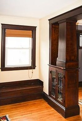 Quality craftsmanship & rich walnut tones adorn this stunning 3 bedroom, 1 bath turn of the century cape! An elegant front door w/ beveled glass sets the tone as visitors enter a massive 16'x26' fireplaced living room. High ceilings, warm hardwood floors, cozy window seats, & twin leaded glass bookcases lead into the bright formal dining room, framed by tapered square columns. Leaded glass built-in hutch w/ undermount lighting. Updated kitchen, recessed lights, pantry, & a peninsula w/ barstool seating. Behind tiny doors in the kitchen and upstairs hallway you'll find a handy laundry chute. New ceiling fans in all bedrooms (2014). High efficiency propane boiler and hot water heater (2013). Updates to plumbing and electric. Separate room in basement would make a terrific wine cellar! Low maintenance vinyl siding & windows. Level, fenced yard. Farmer's porch. One block from public beach at Lake Waushakum. Just a ten minute walk to the Framingham Commuter Rail. Don't miss this one!