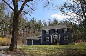 HARVARD Looking for that charming colonial in a country setting, here it is! This three bedroom home is located on 2.86 acres of land abutting conservation land. Hardwood throughout first floor except kitchen. Front to back living room, lovely dining room with built-in, sitting room/library and spacios kitchen on first floor. Three bedrooms with full bath on second floor. Partially finished basement with large stone fireplace. A detached office/media rm with sleeping porch resides in the back yard $445,000