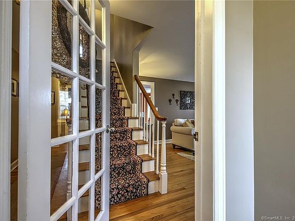 Just delightful inside and out! You will know you are home when you walk into this updated 3/4 BR cape with vestibule entry, hardwood floors, bath on second floor has a tub and separate shower, possible first floors master (now being used as family room), formal dining room,new vinyl siding, newer vinyl windows, newer high efficiency furnace, multi level deck with lighting, mud room with custom seating and shoe shelving, loads of storage and kitchen has newer appliances. There is a bonus room off one of the upstairs bedrooms which has a closet and skylight and could possibly be another BR. House is wired for surround sound and security and lower level walk out game room has newer wall to wall carpeting. There is a large garden area and extensive exterior plantings, special deck lighting and loads of storage space.....this beauty has it all! Subject to seller finding suitable housing