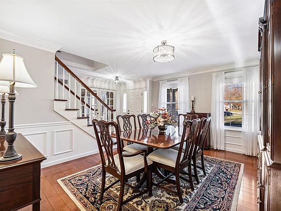 Fall in love with this home! Well-maintained 2 Sty 4 bdrm 3.5 baths on a quiet culdesac. The light-filled open plan has 3400+ sf of living space. Gleaming wood floors throughout, crown molding, & freshly painted in neutral tones. The Family room w/fireplace is the heart of the home with its glass door entry, flanked on each side by matching paned windows, to an oversize (54') partially covered deck allowing elegant, yet leisurely, entertaining. Updated kitchen with stainless appliances, breakfast area in front of a large bay window overlooking the expansive backyard. Main Floor laundry. Upstairs, the large primary suite has a vaulted, beamed ceiling and wood flooring, w/i closet, plus a bath with an oversize tub & separate shower. 3 additional bedrooms and a full bath on this floor. Walk-out Lower Level has a bar, exercise/bonus room, full bath, plus storage. Great yard for family fun, backs to trees. Many updates and improvements have been made so the new owners can move in and enjoy!