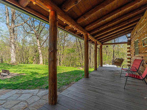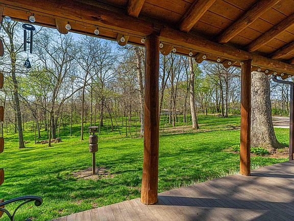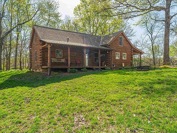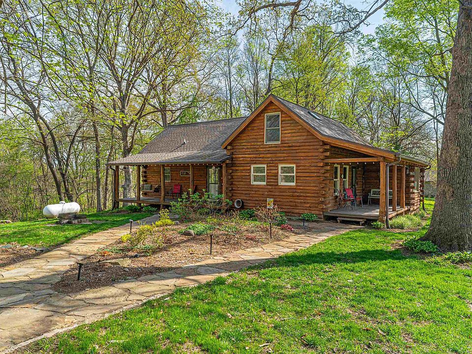 Now on the market is this beautiful 3 bed/2bath log cabin nestled within a 5.26 acre wooded and serene property! This immaculate home showcases hardwood flooring throughout the comfortable living room and dining room (could also be a home office). The eat-in kitchen is equipped with quartz countertops, fresh cabinetry, abundant storage, appliances that remain, and heated tile flooring that leads through the hallway to the main floor laundry room (washer/dryer stay, too), a tastefully newly remodeled bathroom with a walk in shower, and a spacious bedroom with new waterproof carpet. Upstairs are 2 nicely sized bedrooms with ample storage space. One room opens onto a small balcony overlooking the living room. The balcony is a perfect place for a small library or reading nook! Additional storage can be found in the hallway across from the 2nd full bathroom! There's more! Outside are 2 very relaxing porches (only country views), and a detached 3 car heated garage with a storage room, air compressor, and a PTO generator. The small shed has water and electricity. Transformer and underground electric are new. Private well and septic are on the premises. Property lines and home measurements are approximate. Appliances are not warranted. MOVE-IN ready is exactly what this house is with fresh paint, new/newer light fixtures, etc.! Don't miss your opportunity to be the next owner of this magnificent property!