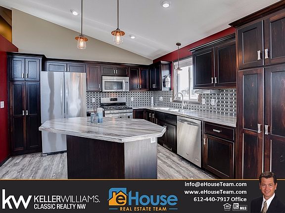 This charming home is a must see. As you enter you will be captivated by the use of the wide open spaces married with an at home feel. Revel in all the features of a home built for today's style living. Including, vaulted ceilings, SS appliances, tile back-splash, high ceilings, dark stained cabinetry, upper level laundry, and a huge 3 car garage. The upper level boast 3 bedrooms, two bathrooms, laundry, master bedroom with an en-suite bathroom, and a walk-in closet and finished basement.