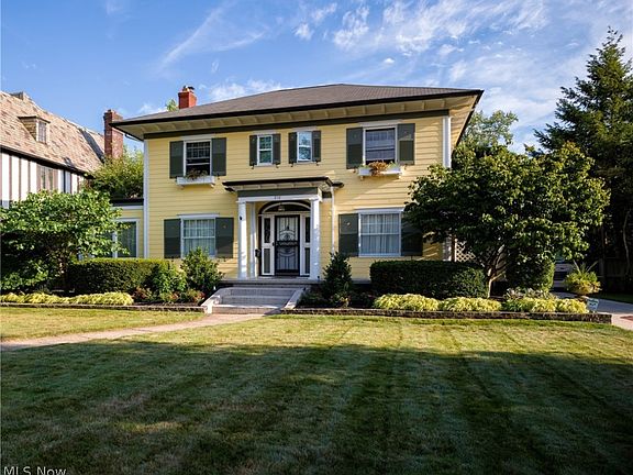 Charming “Georgian Revival” home in the heart of Ridgewood. Built in 1924, it boasts beautiful hardwood floors, 12“ ceiling moldings, 3 sets of French doors, lovely foyer with leaded glass windows and curved staircase. Owners love to entertain in the enormous dining room with bay window, baby grand piano, and gorgeous fireplace. Or get cozy in the parlor/living room with French doors opening out to the covered side porch/awning. Enjoy cooking in the updated cherry kitchen complete with pantry, wine rack, cute dinette area. 1st flr. den/library plus a huge family room addition in rear of house for the family to settle into an evening of tv and games. Impressive corner stone fireplace has Waterford woodburner that stays. There is a 2nd office area off kitchen and half bath. 4 generous bedrooms upstairs- owner's suite has a large walk in closet plus 2 built-ins, with new bath in 2018 featuring black & white tile shower, quartz vanity top. Lovely stamped concrete front porch with pillars.