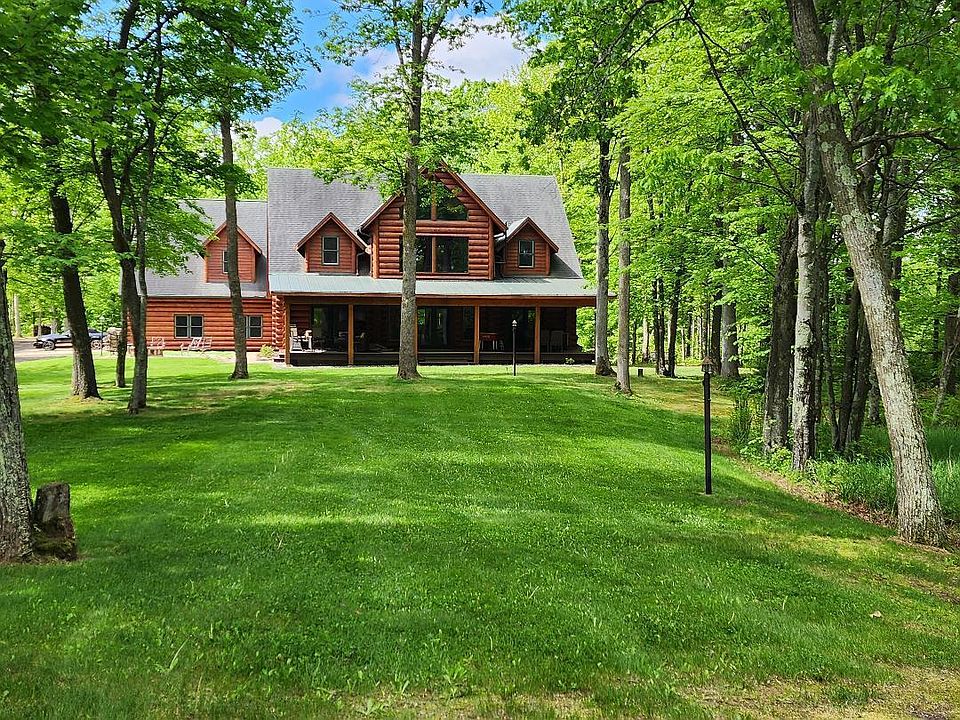Nestled on 5 acres of level terrain, a magnificent log home featuring four bedrooms and four bathrooms awaits, offering an impressive 250 feet of lake frontage on Horseshoe Lake. Enjoy unparalleled tranquility amidst a scenic backdrop. The property encompasses a sizable garage with additional living space above, ideal for accommodating guests or extended family members. A spacious porch facing the lake provides an ideal setting for gatherings. The main level showcases a luxurious master suite with a generous bath and fireplace. The grandeur of the great room is accentuated by a towering fireplace, seamlessly connected to a den and a majestic log staircase. The well-appointed kitchen affords stunning views of the lake. Furthermore, a heated shop/pole shed with spray foam insulation is part of the package. Boasting an array of amenities, this residence offers a wealth of features. Contact us today to schedule a private viewing.