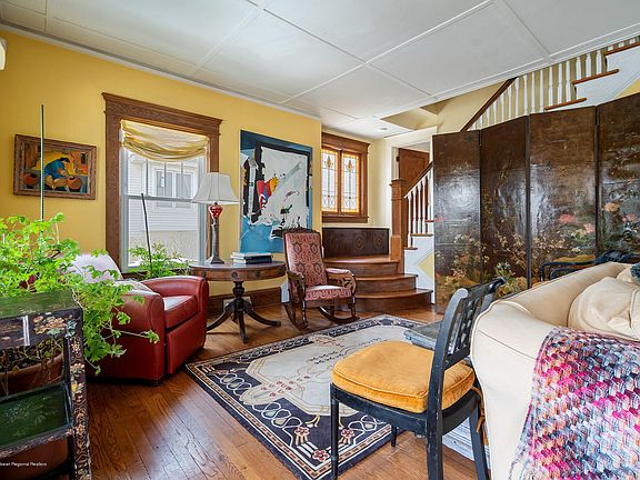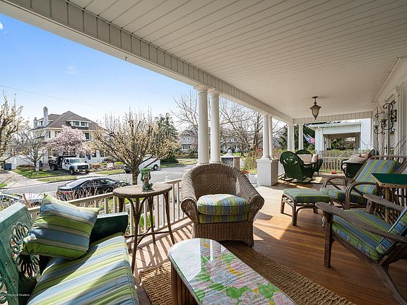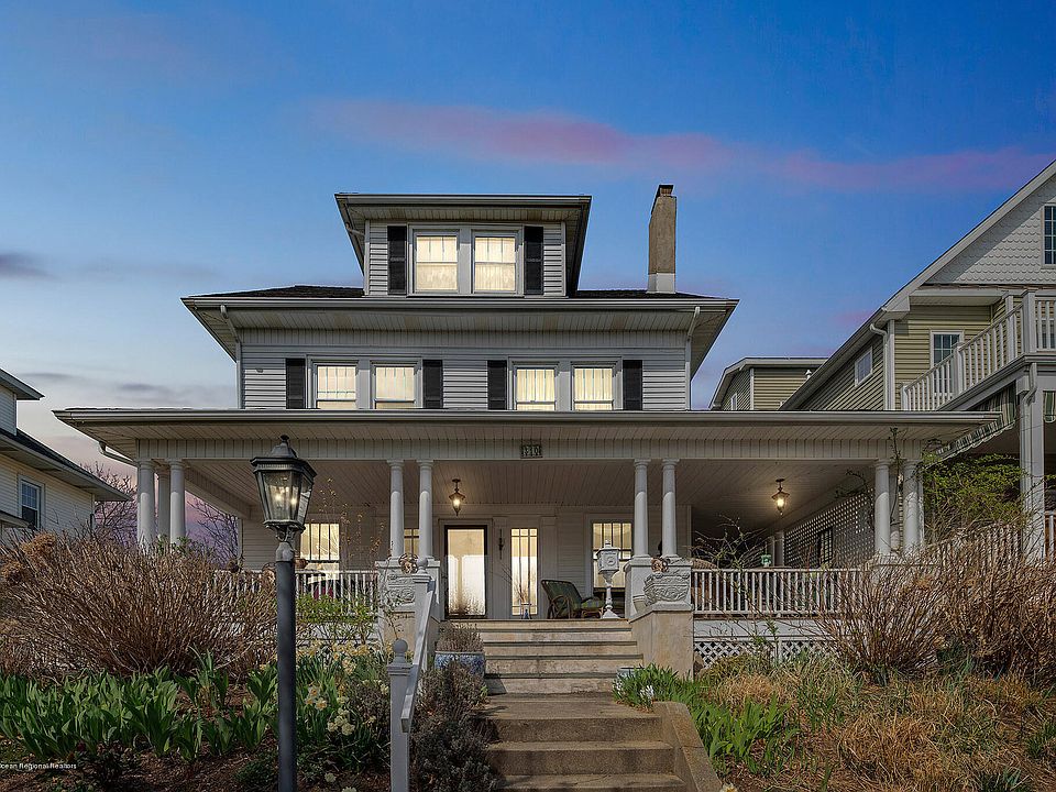 LOCATION, LOCATION, LOCATION Historic seaside colonial in the desirable south end of Bradley Beach. Enjoy ocean breezes on the mahogany wraparound porch just two blocks to the 2nd Avenue beach. The home is centrally air-conditioned with two different zones Six Bedrooms, 2 ½ Baths, original stained glass windows, oak floors/trim throughout, Remodeled bathrooms, sound system, open living room/dining room and fully-equipped cook's kitchen with honed granite countertops, large center island for casual dining and meal preparation and professional-grade appliances including Viking stove and Bosch dishwasher. Beautifully landscaped backyard with gas grill, outdoor dining for 8 and outdoor shower and underground sprinkler system, electric dog fence and Paved driveway for 3 cars.