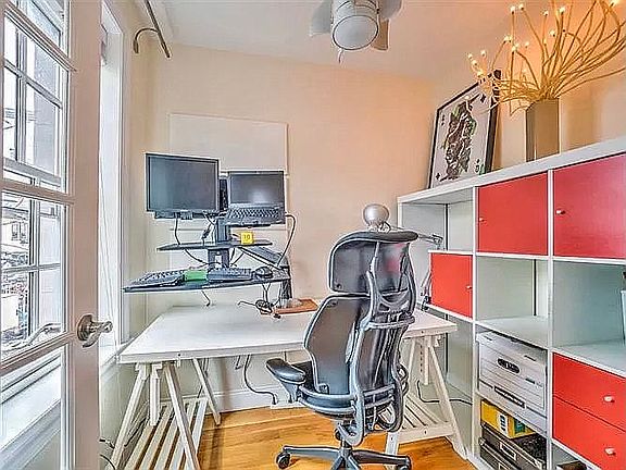This beautiful home has it all! You'll comfortably spread out over 1200 square feet pf living space which includes: hardwood flooring throughout, central air, two large bedrooms, a separate den/work from home office, an open and airy living room and dining area. A spectacular fully loaded designer kitchen, featuring granite counters, stainless appliances and an entertaining island. The home also offers two beautiful bathrooms, including a windowed master with dual sinks. Storage abounds with ample closets, including walk ins, and a private laundry room. Then step outside onto your back terrace, which provides an outdoor urban oasis. Central air and an additional private storage room completes the picture. Enjoy everything Downtown Jersey City has to offer, since you'll be just steps to restaurants, markets, parks, nightlife and PATH trains for 24 hour New York City transport. Welcome home to perfect brownstone living!