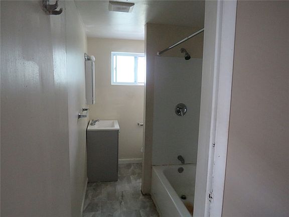 Spacious three story home with three bedrooms and one full bathroom. Large updated eat in kitchen with white cabinetry and plenty of counter space. Enjoy the rear covered porch and fenced in yard this summer. Full, unfinished basement for added storage space.
